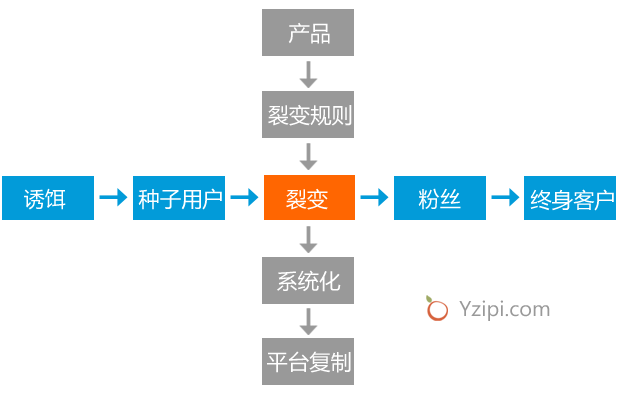 從《裂變營銷導(dǎo)圖》的橫軸來開,策劃裂變營銷活動的步驟分為: